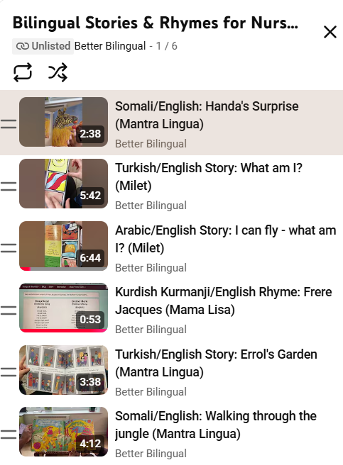 We had a fun session recording some bilingual stories and rhymes in these first languages: