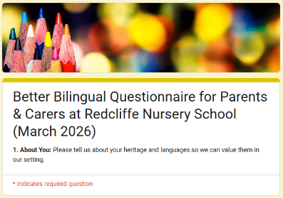 We also want to understand the best ways to share information about the nursery and your child’s progress with you, as multilingual parents.